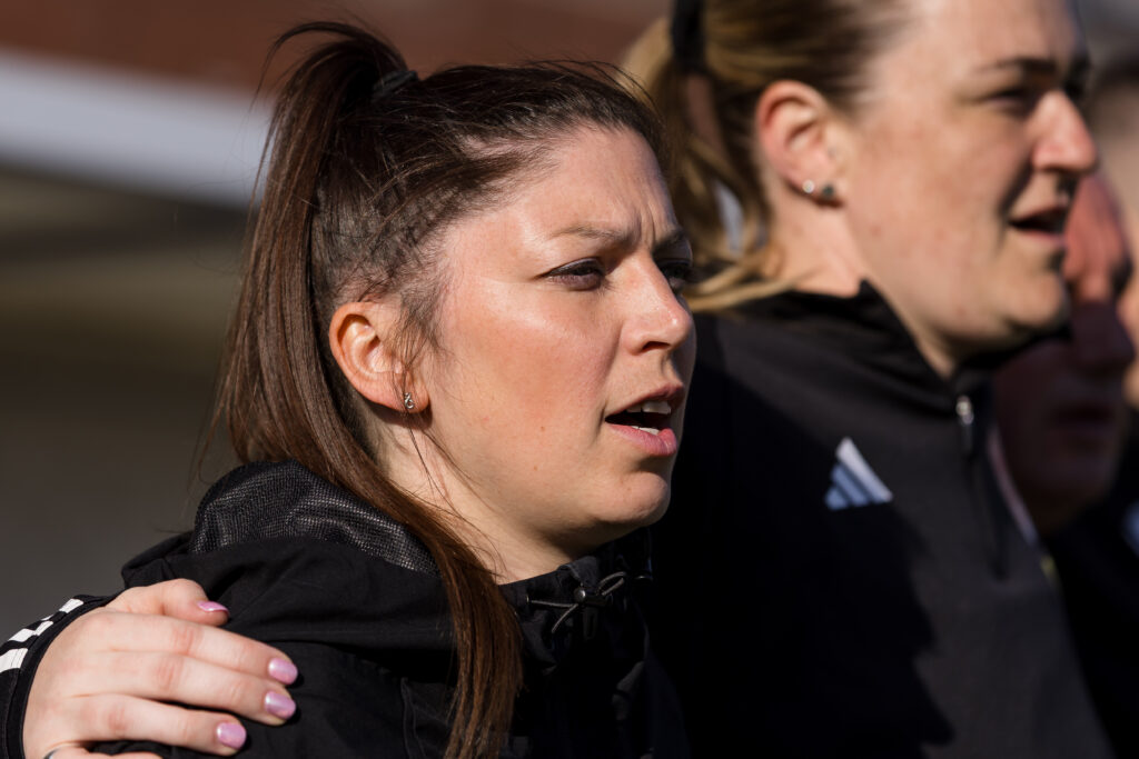 LLANELLI, WALES – 02 APRIL 2025: Wales manager Nia Davies during the 2025 European Women’s Under-19 Championship – Round 2 qualification fixture between Wales U19 women & France U19 women at Stebonheath Park, Llanelli, Wales (Pic by John Smith/FAW)