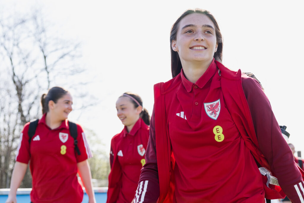 LLANELLI, WALES – 05 APRIL 2025: Wales arrives during the 2025 European Women’s Under-19 Championship – Round 2 qualification fixture between Wales U19 women & Republic of Ireland U19 women at Stebonheath Park, Llanelli, Wales (Pic by John Smith/FAW)